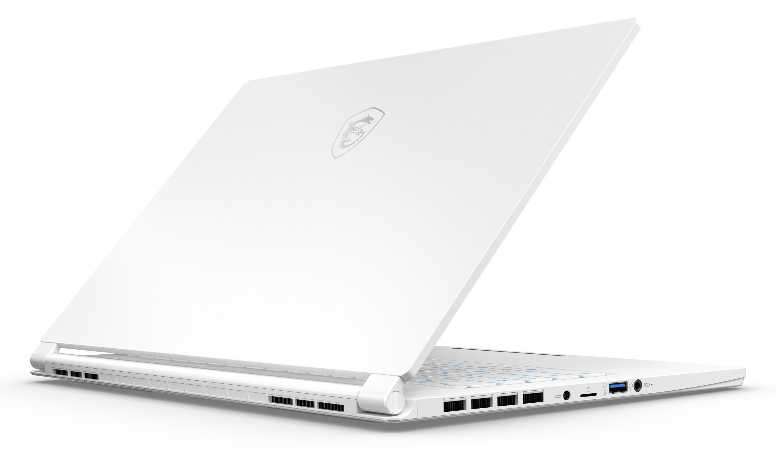 Khác với đa số laptop gaming trên thị trường sở hữu thiết kế hầm hố, tông màu đen chủ đạo, Stealth 15M được MSI khoác trên mình lớp vỏ trắng ngần mà hãng gọi là Pure White. Các góc cạnh máy được bo cong mềm mại, nên nhìn tổng thể, MSI Stealth 15M trông giống một chiếc ultrabook cho dân văn phòng hơn là laptop gaming.